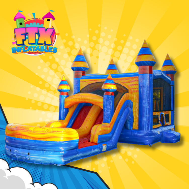 Ready to chill out and heat up the fun? The Melting Arctic Dual Lane Combo Bounce House brings cool vibes and high-energy excitement to any party! With its icy blue design and frosty accents, this inflatable unit offers a spacious bounce area, a built-in basketball hoop, and two thrilling slides that end in a splash-worthy splash landing. Whether you're going dry or diving into water play, this combo is a guaranteed crowd-pleaser.